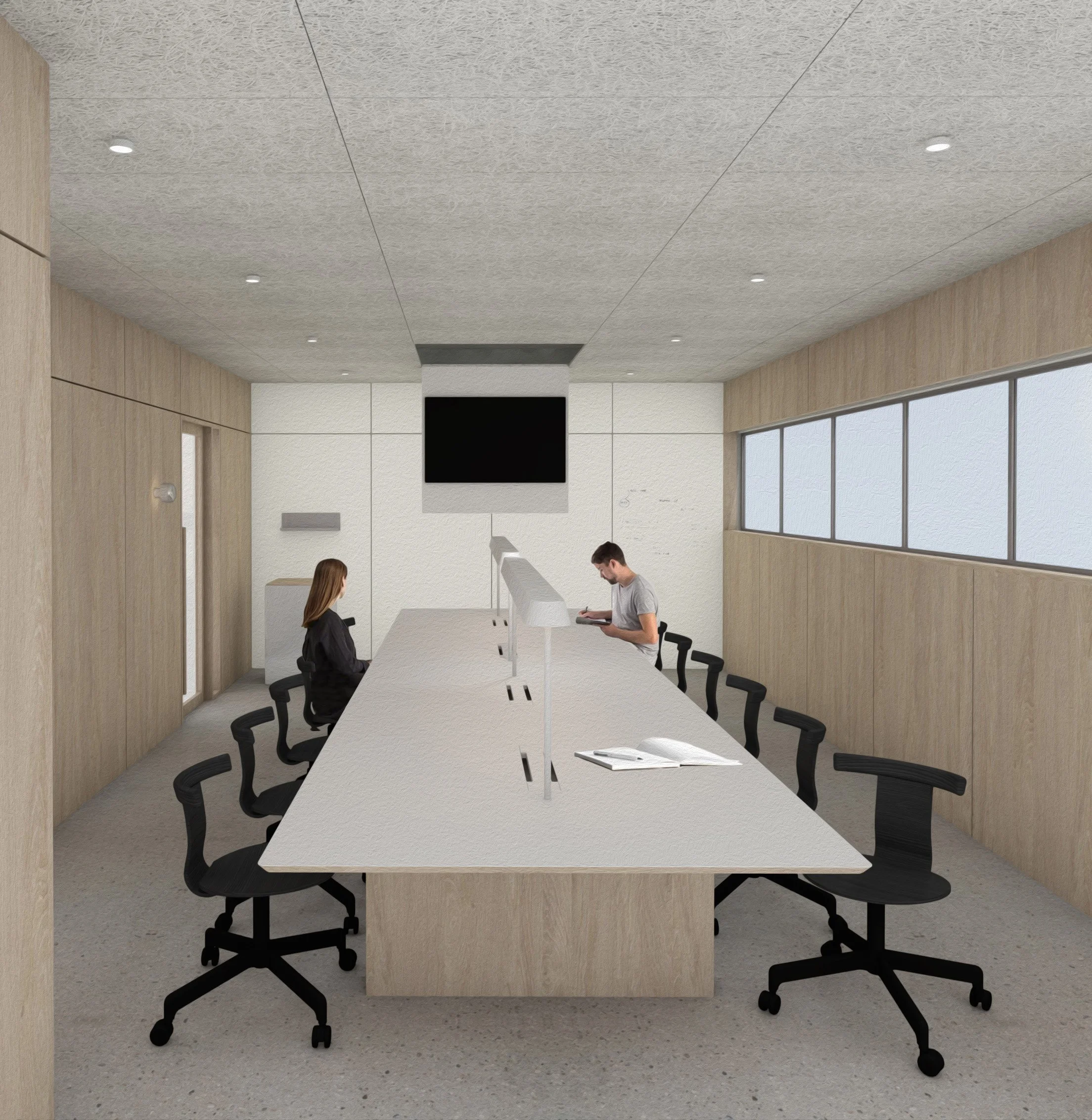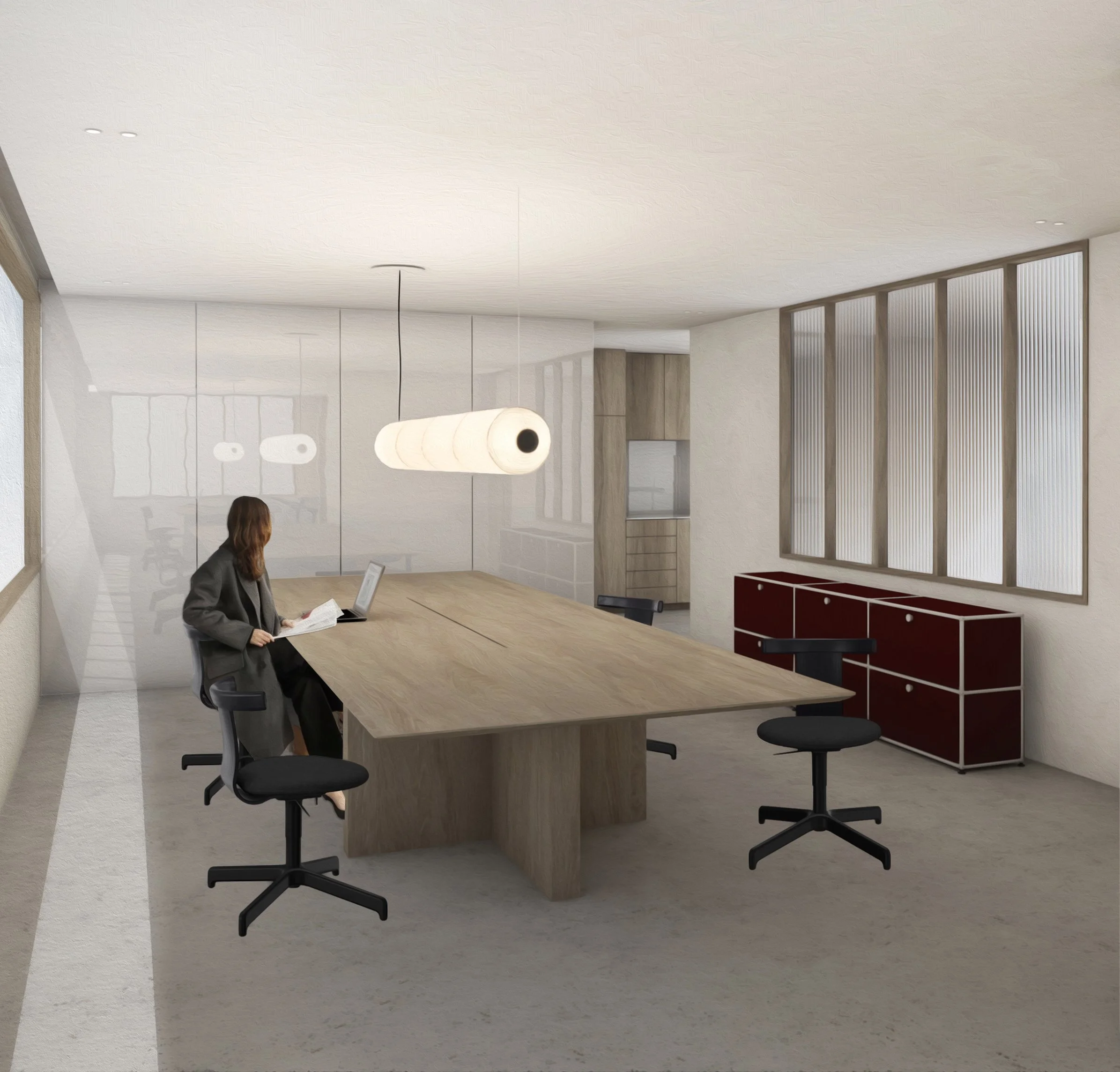 The brief was to enhance the functionality and aesthetics of an existing office space. We achieved this by reconfiguring the floor plan and implementing an honest and timeless material palette, as well as new furniture, lighting, and bespoke joinery.